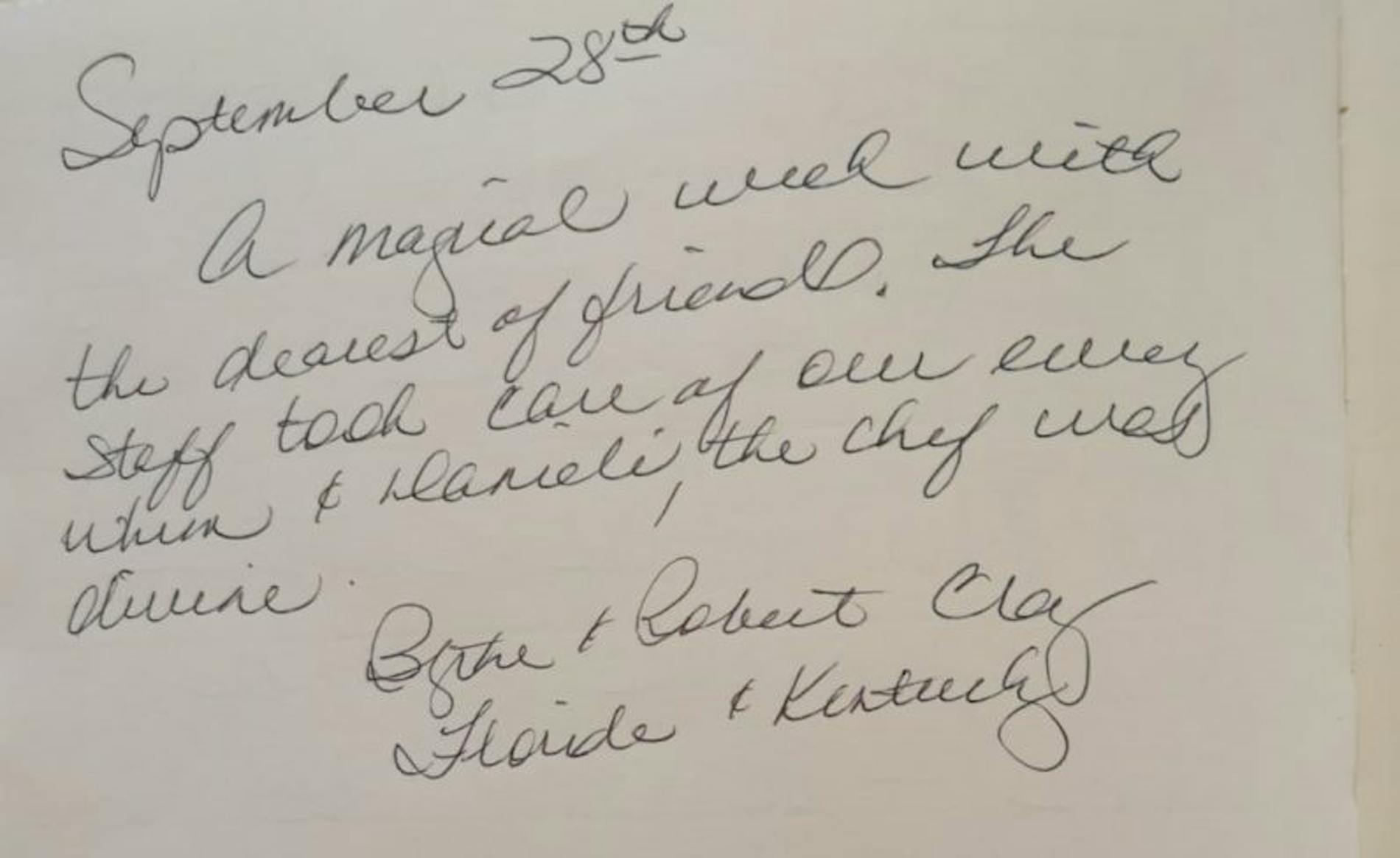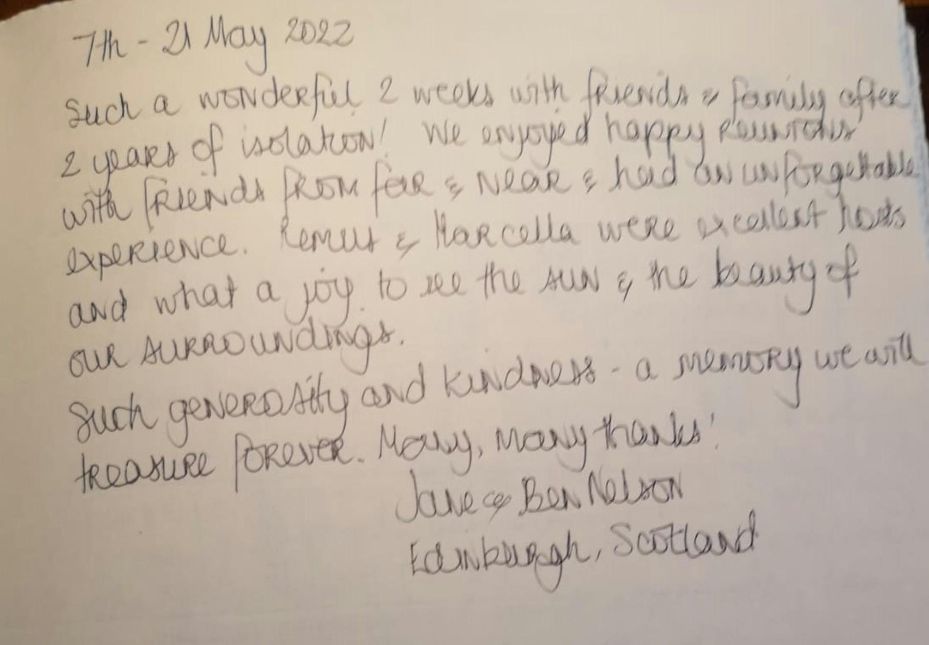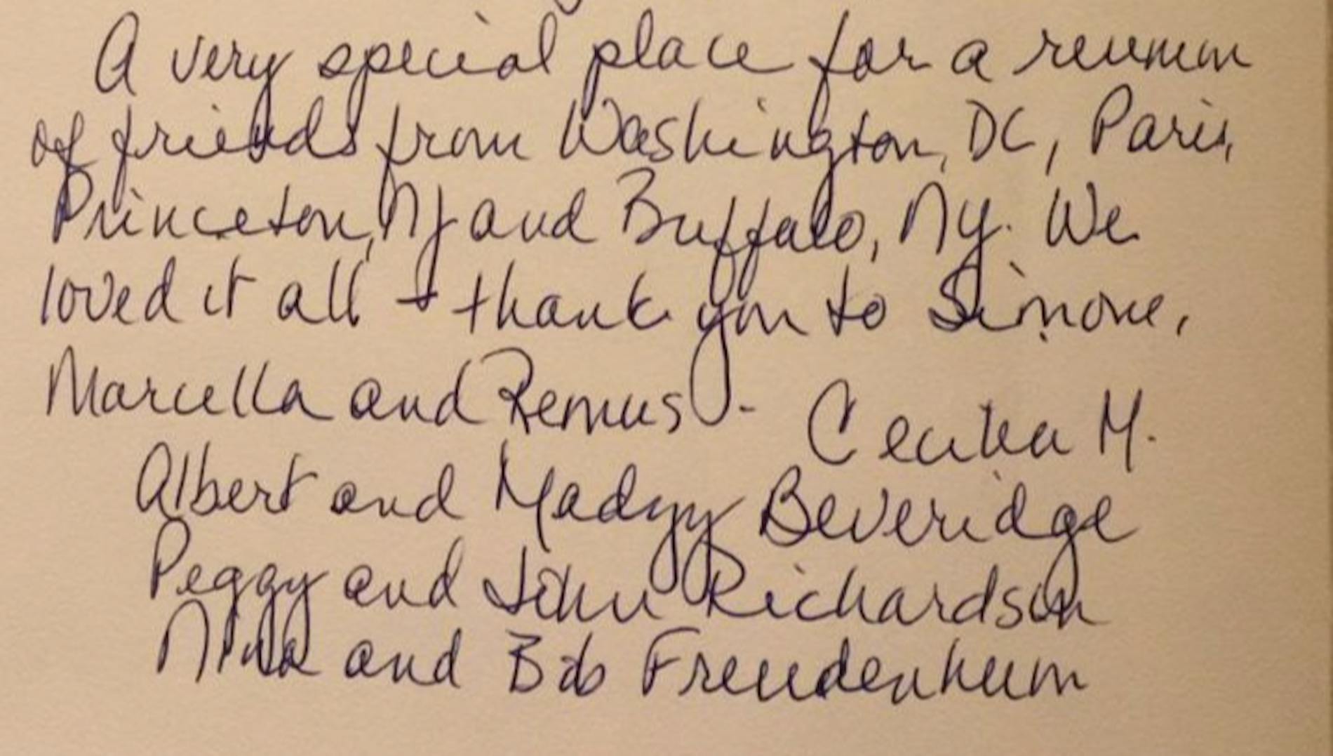 "A very special place for a reunion of friends from Washington DC, Paris, Princeton,N.Y. and Buffalo. We loved it all. Thank you to Simone, Marcella and Remus."