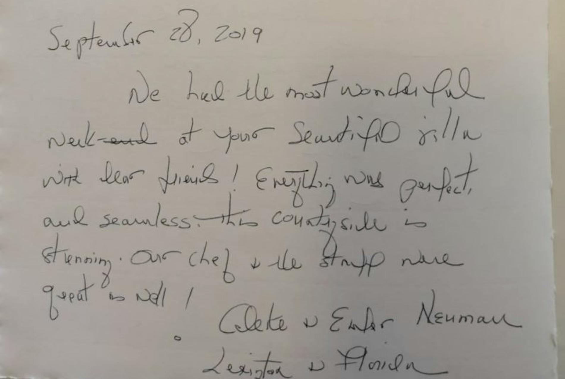 “We had the most wonderful week at your villa with our friends. Everything was perfect and seamless the countryside is stunning. Our chef and staff were great as well”