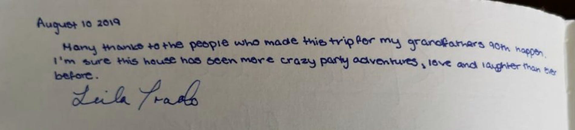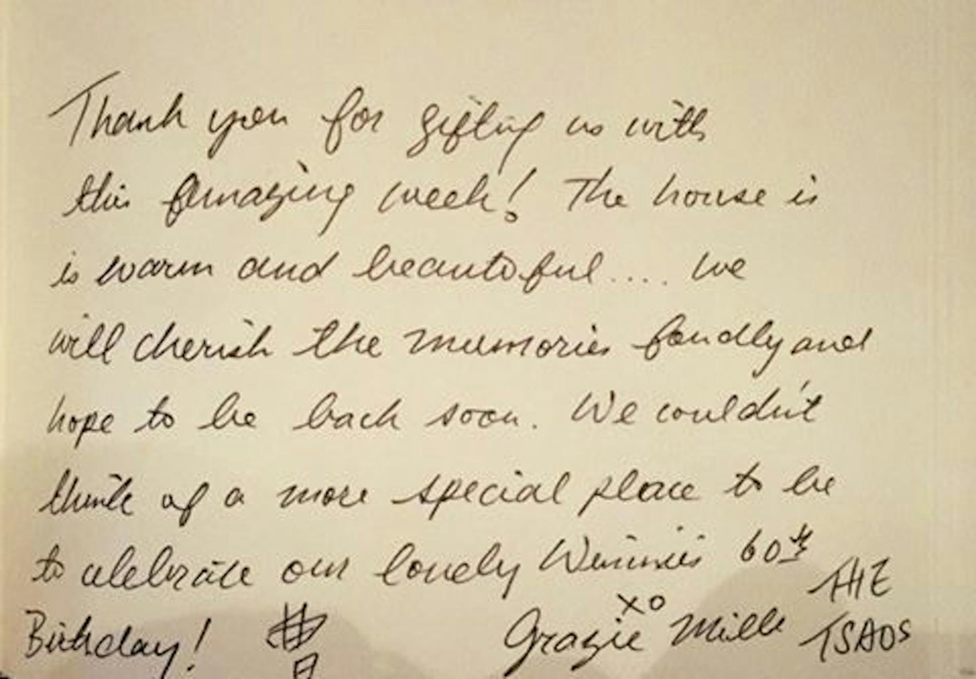 "Many thanks to the people who made this trip for my Grandparents 90th happen. I’m sure this house has seen more crazy party adventures love and laughter than ever before."
