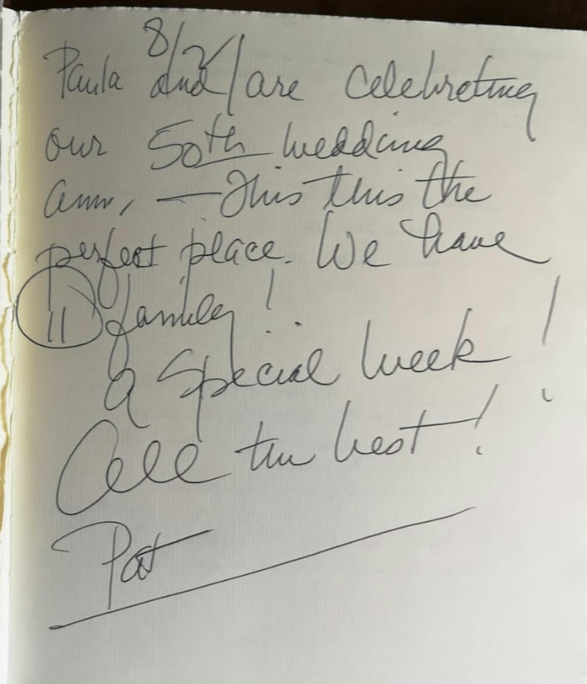 "Paula and I are celebrating our 50th wedding anniversary – This is the perfect place, we have 11 family! A special week! All the best!"