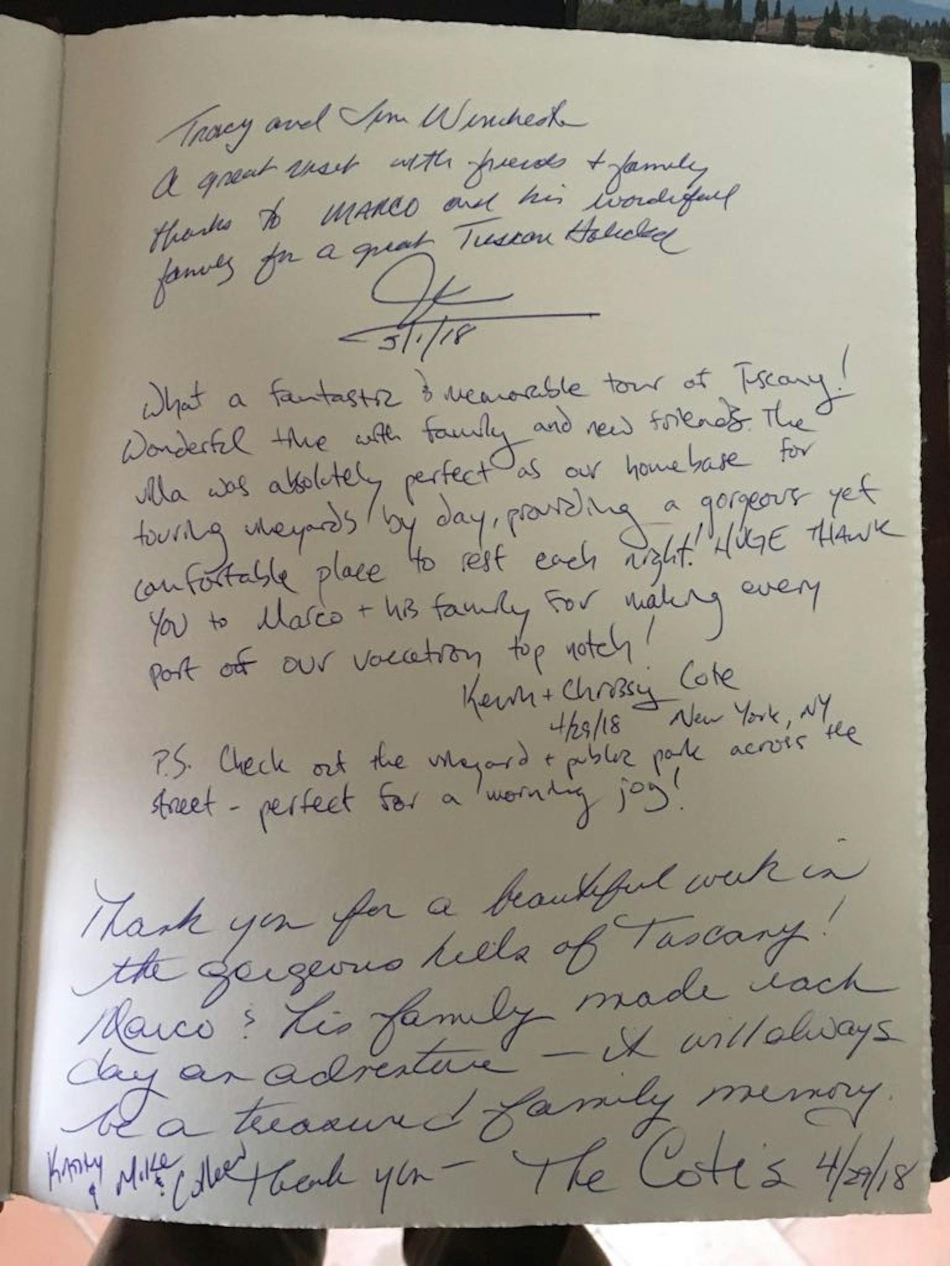 "Thank you for a beautiful week in the gorgeous hills of Tuscany. Marco and his family made each day an adventure. It will always be a treasured family memory."