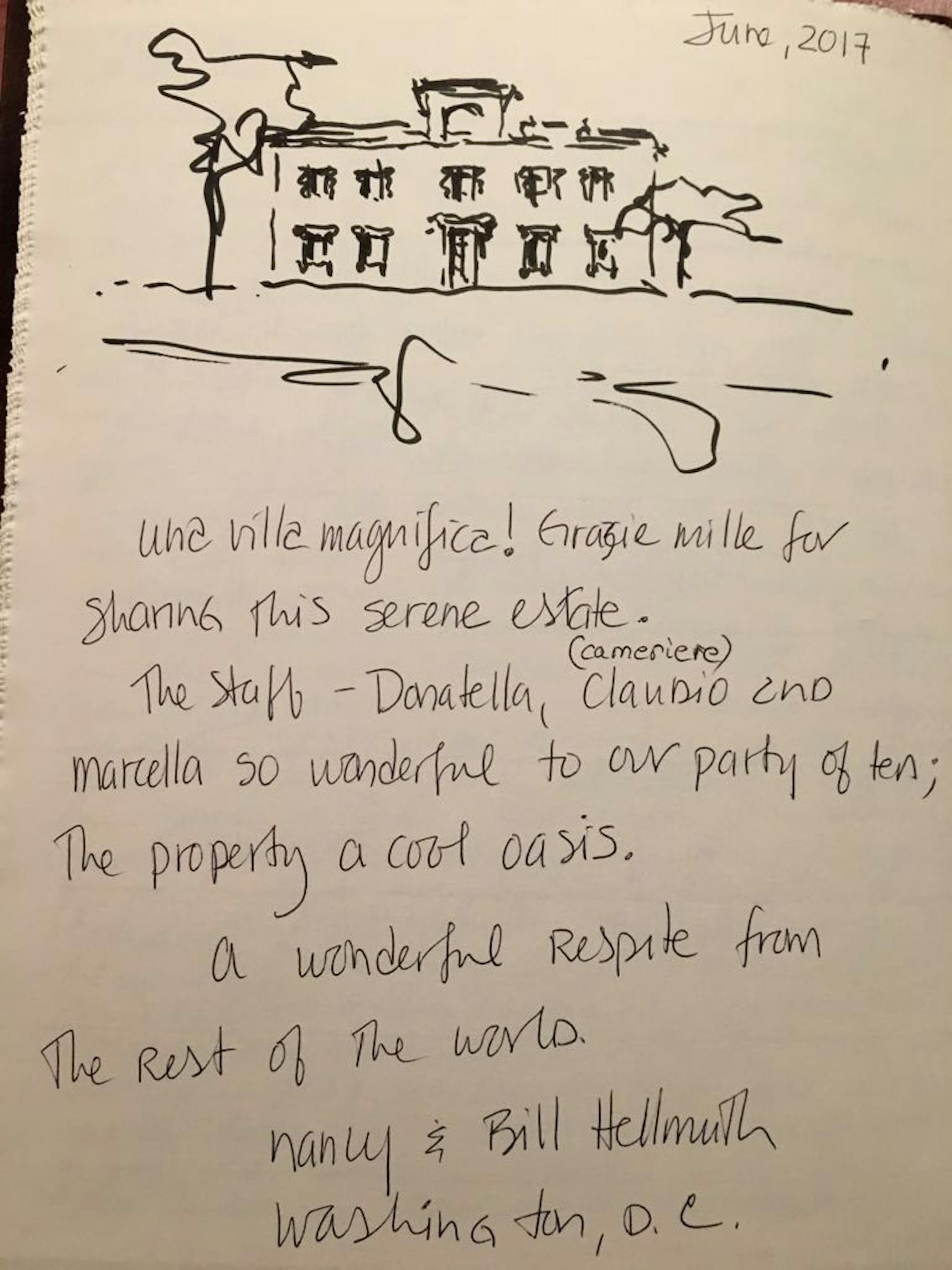 "Una villa magnifica! Grazie mille for sharing this serene estate. The stuff Donatella, Claudio and Marcella so wonderful to our party of ten. The property a cool oasis. A wonderful respite from the rest of the world."