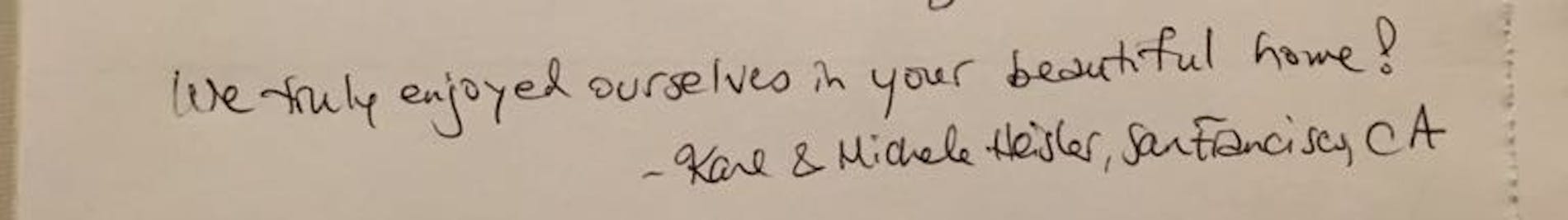 "We truly enjoyed ourselves in your beautiful home!"