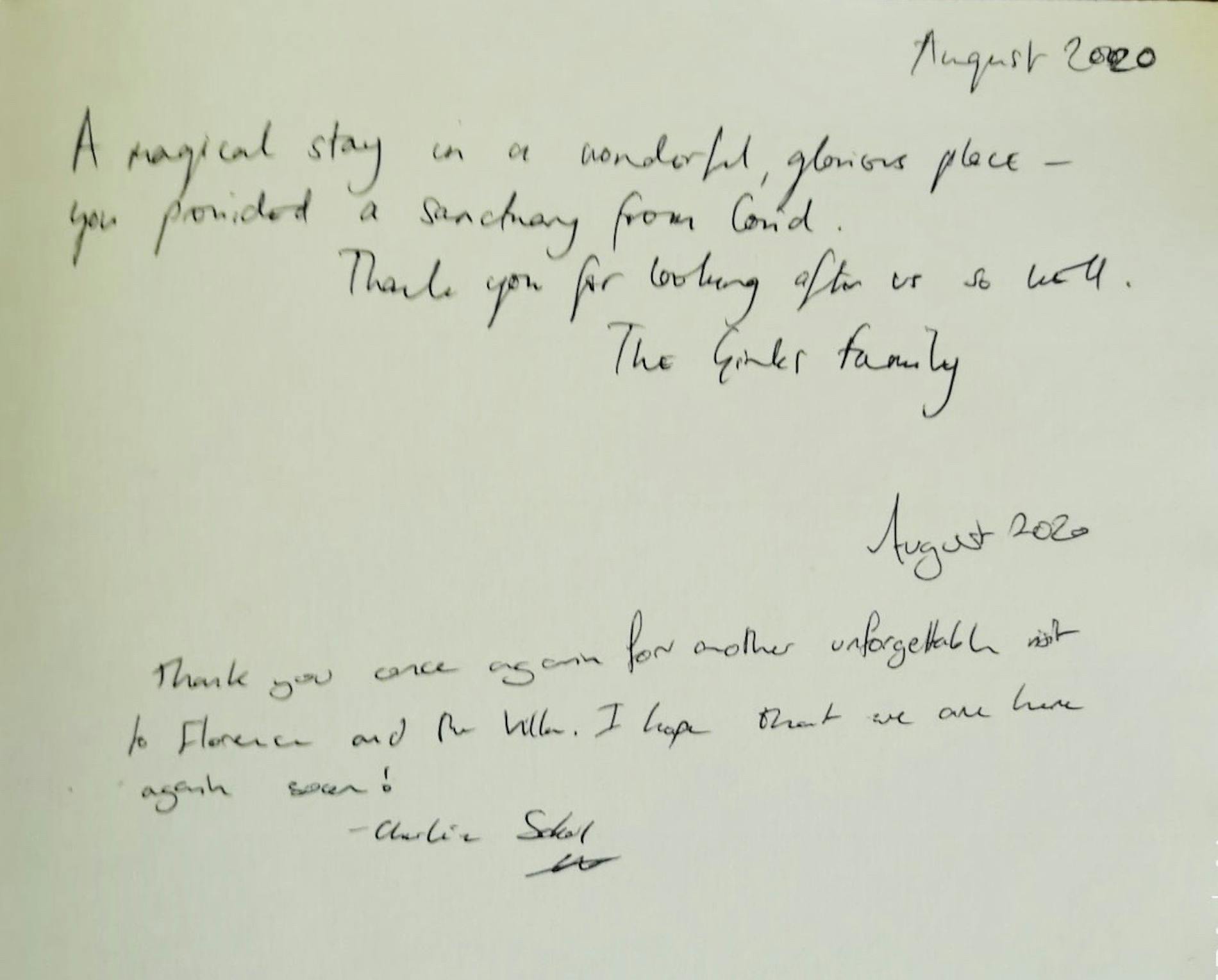 "It has been a really wonderful week for all of our family. We could not have hoped for a more idyllic setting for our annual holidays. The time we spent here will forever remain in our collective memory."