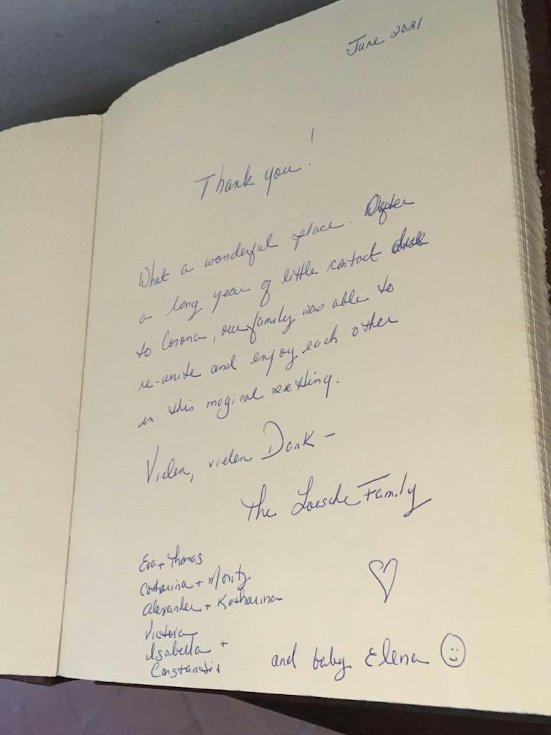 Thank you ! What a wonderful place. After a long year of little contact all family was able to re-unite and enjoy each other in this magical setting. Vielen, vielen danke!