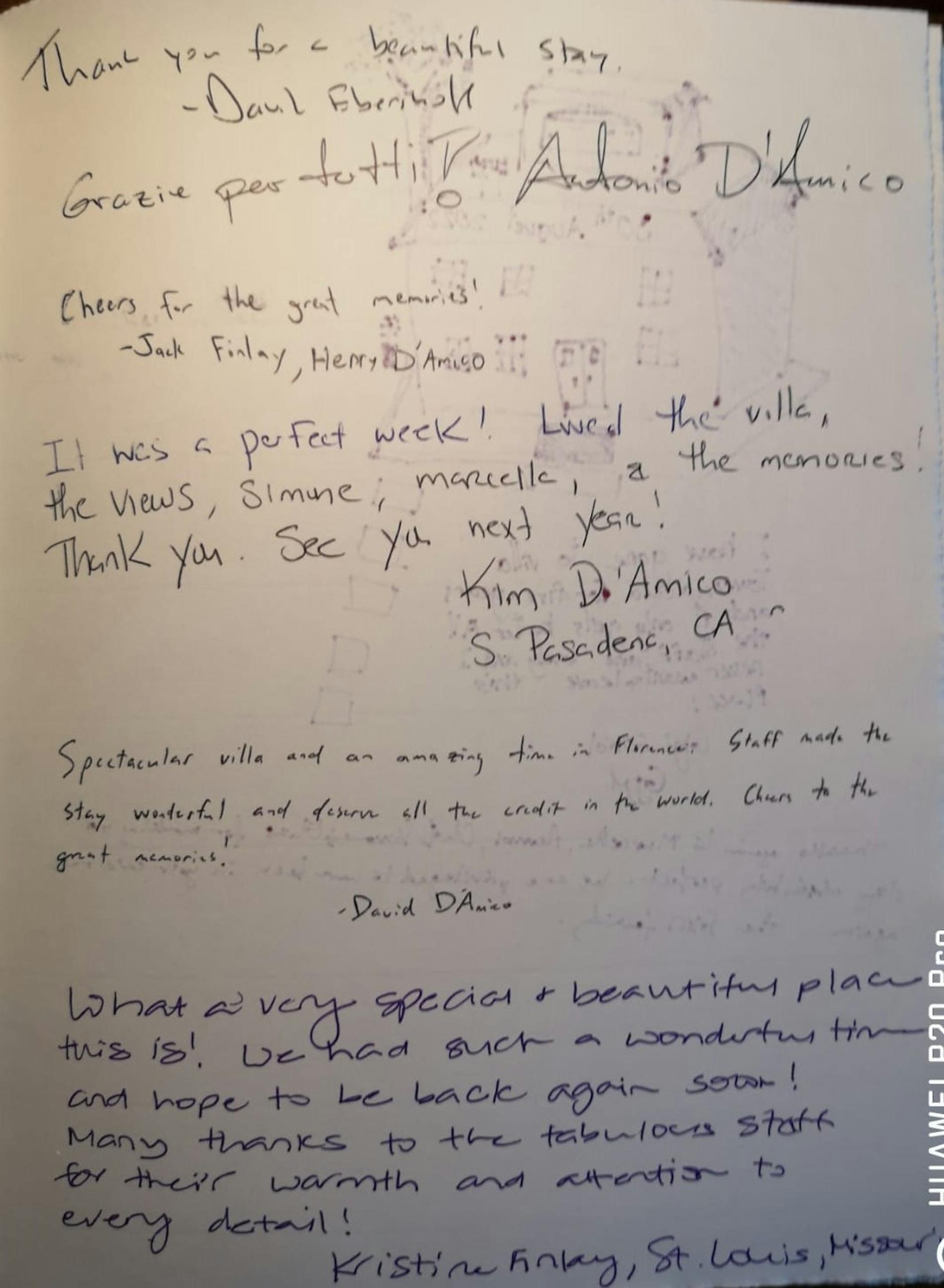 A magical stay in a wonderful gloriuos place. You provided a sanctuary from Covid. Thank you for looking after us so well. Thank you once again for an unforgettable visit to Florence and the villa. I hope that we are here again soon! (duplicate)