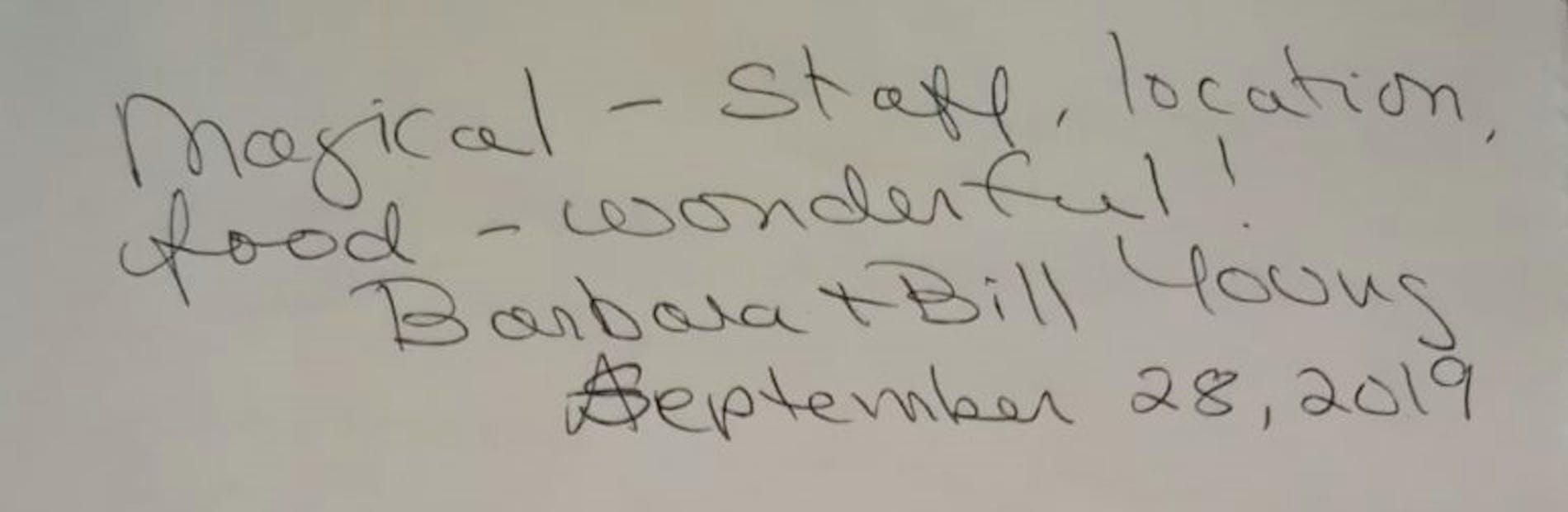 "Magical – Staff, location, food – wonderful."
