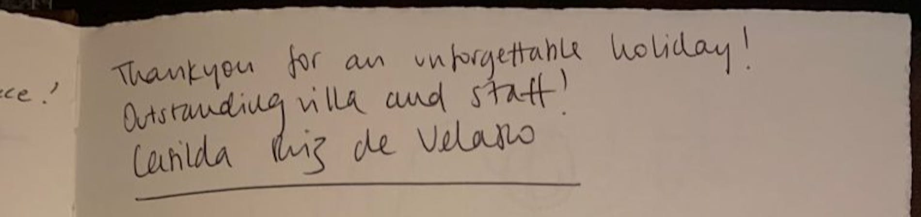 "The most beautiful villa I have ever been to. The staff were great and the house was as clean as a hotel. Thank you."