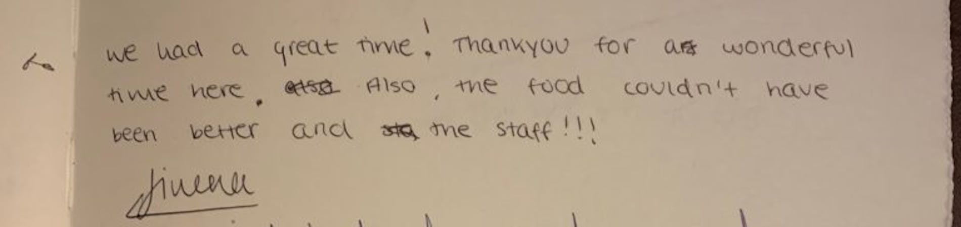 "We had a great time! Thank you for a wonderful time here, also the food couldn’t have been better and the staff!"