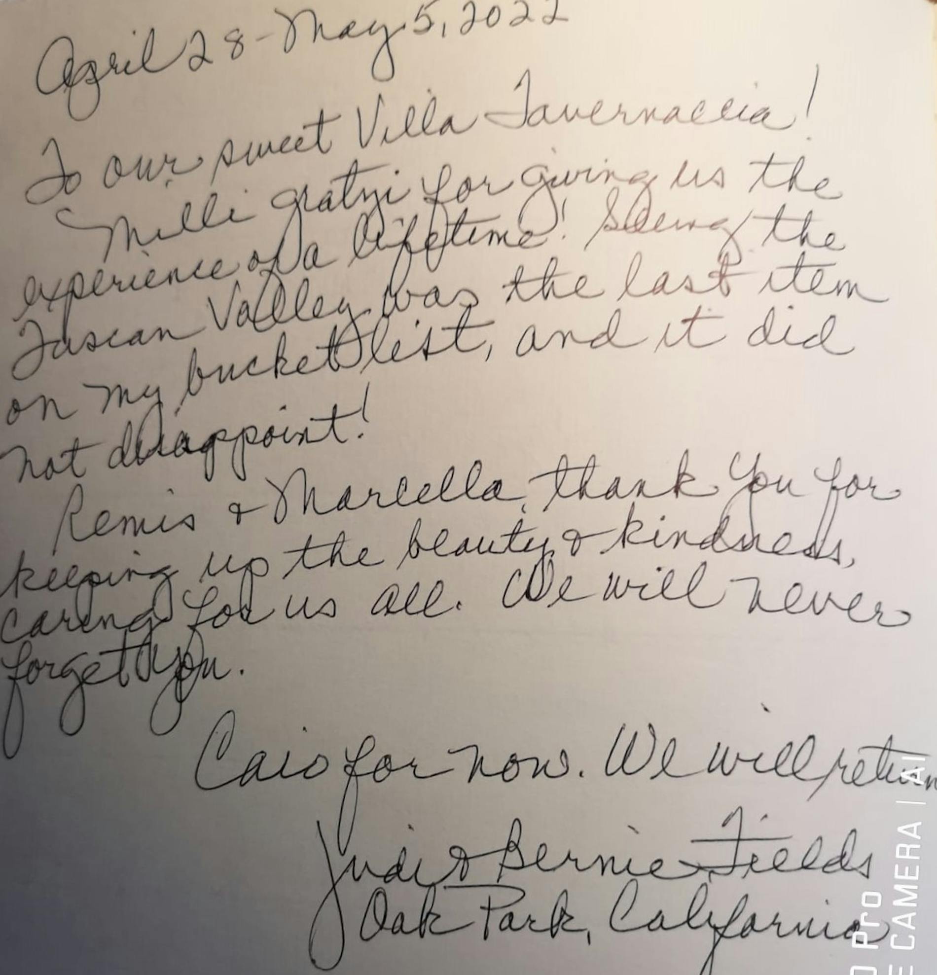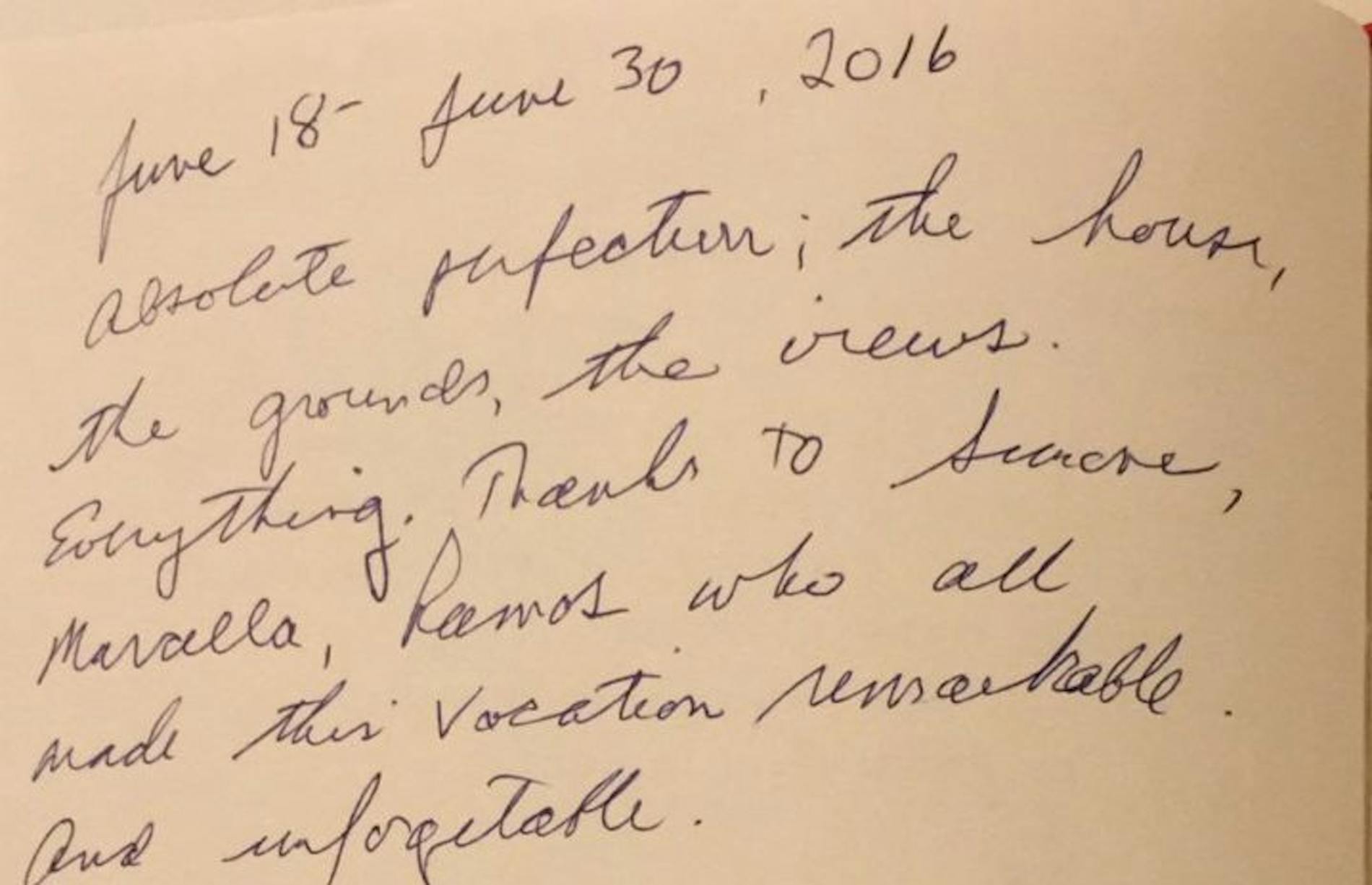 "A very special place for a reunion of friends from Washington DC, Paris, Princeton,N.Y. and Buffalo. We loved it all. Thank you to Simone, Marcella and Remus."