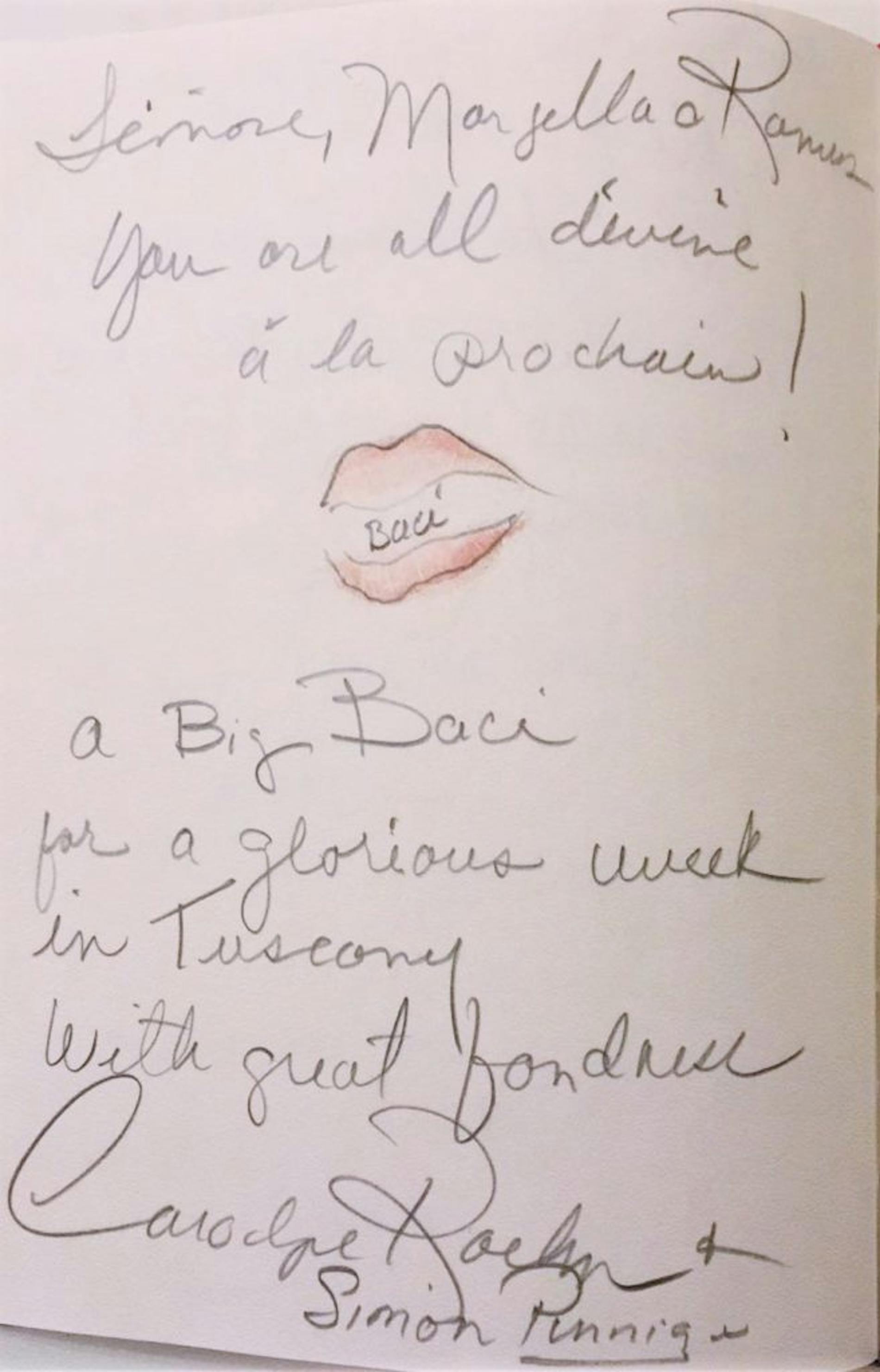 "Simone, Marcella e Remus, you are all divine, à la prochain! A big “baci” for a glorious week in Tuscany with great fondness."