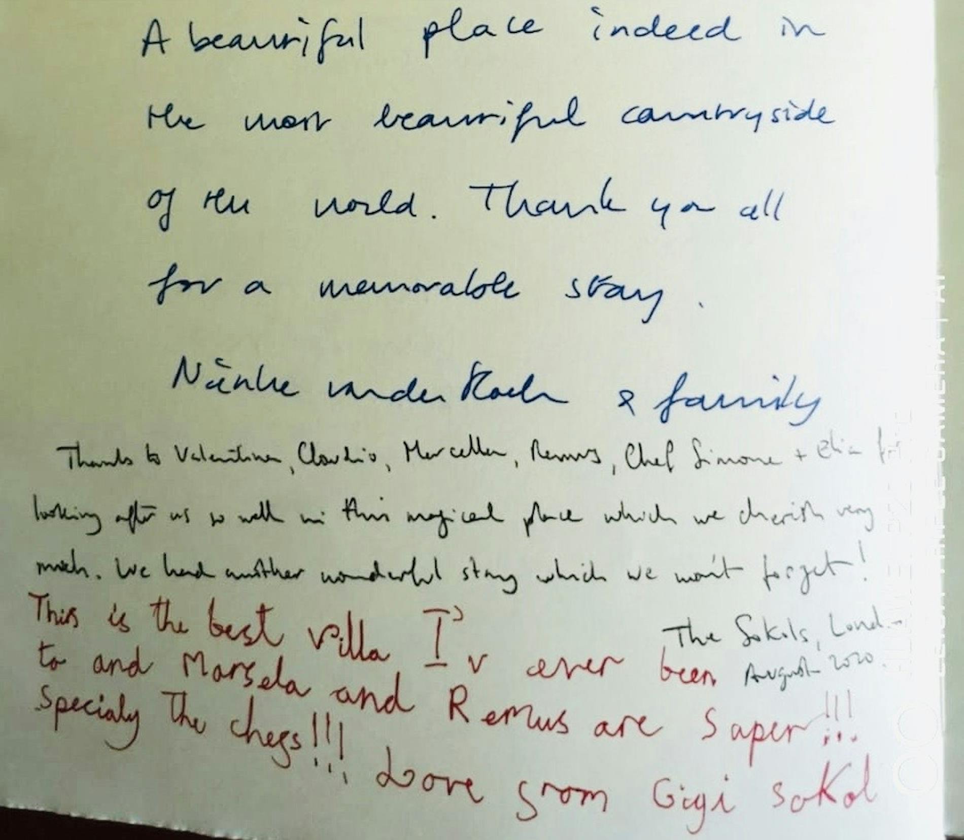 A beautiful pace indeed in the most beautiful countryside of the world. Thank you all for a memorable stay and for looking after us so well in this magical place which we cherish very much. We had a wonderful stay which we won't forget. This is the best villa I've ever been to and Marcella and Remus are super! Specially the chefs!